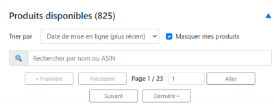 Vous pouvez rechercher les produits avec le moteur de recherche, filtrer par prix et date croissant/décroissant ou parcourir les pages…