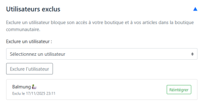 Et une liste d'utilisateurs dont vous voulez bloquez l'accès à votre boutique
