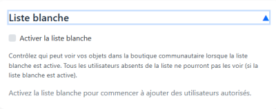 Activez la liste blanche qui permet de contrôler qui peut avoir accès a votre liste de produits proposés