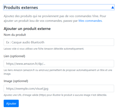D'ajouter des produits externes. Vous pouvez le faire également depuis la page Mes Commandes de PickMe Web