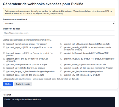 Vous allez alors avoir un lien pour le webhook a copier coller dans le menu de PickMe