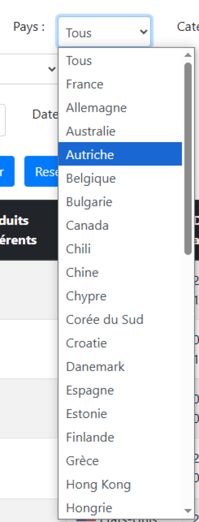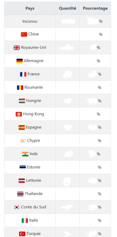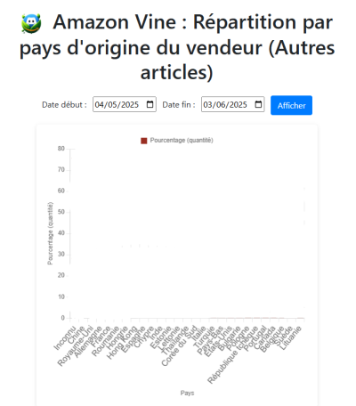 Regroupant les statistiques sur la répartition par pays d'origine du vendeur des produits de l'onglet autres articles