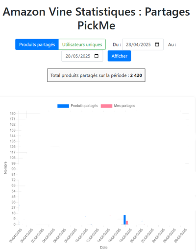 Vous avez également accès aux statistiques sur la page PickMe Web, qui se présente comme tel :