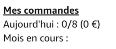 Statistiques sur la valeur de vos commandes du jour et du mois en cours.