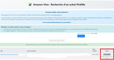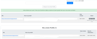 Vous avez aussi la possibilité de réclamer un achat fait via PickMe sur la page