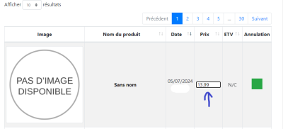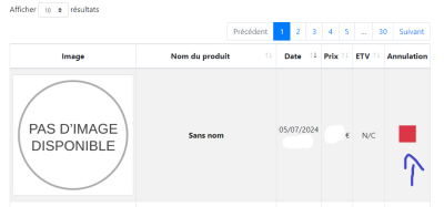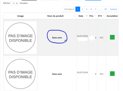 S'il n'y a pas d'image vous pouvez cliquer sur “ sans nom” qui vous renverra directement au produit s'il existe encore