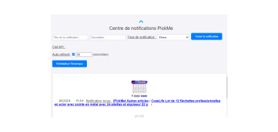 Le centre de notifications regroupe les produits partagés sur PickMe en live