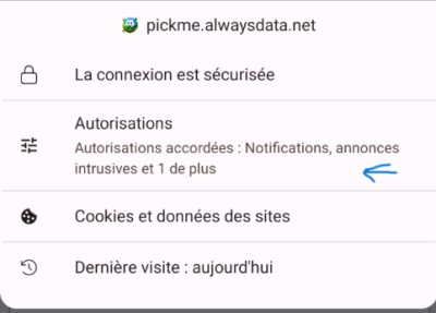 Si les notifications ne sont pas autorisées, cliquez sur autorisations