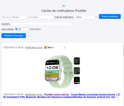 Rafraichissez la page centre de notifications, puis testez à nouveau la notification. Normalement tout doit fonctionner, vous aurez alors des notifications comme ça dans le centre de notifications: