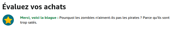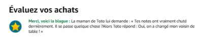 Si vous avez bien travaillé au bout de 7 avis vous aurez le droit à une blague parmi celles ci :