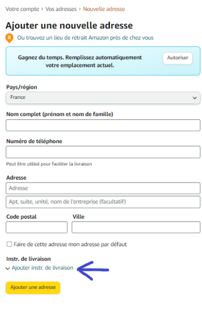 Vous pouvez ajouter des instructions de livraison lors du passage d'une commande “ normale ”