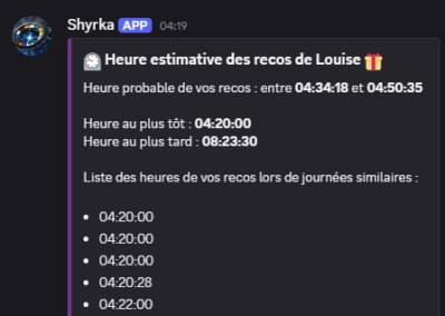 Pour tous les membres vous pouvez utiliser un webhook et laisser tourner un appareil avec l'autorefresh sur la page recommandé pour vous pour être prévenu de l'apparition d'une nouvelle reco et de l'heure exacte (uniquement valable sur PC). Ceci afin de les signaler plus justement dans le but de rendre vos prédictions de recos le plus juste possible quand vous aurez accès à Mon IRMA