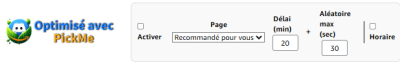 Ce qui fera apparaitre ce menu à côté du logo de PickMe, dans lequel vous pourrait configurer votre autorefresh. veuillez à ne pas mettre de délai trop rapproché de peur de prendre un softban de la part d'Amazon